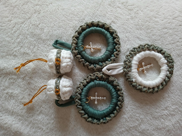 Lot de décorations de Noël composé de 3 suspensions et 2 boules.