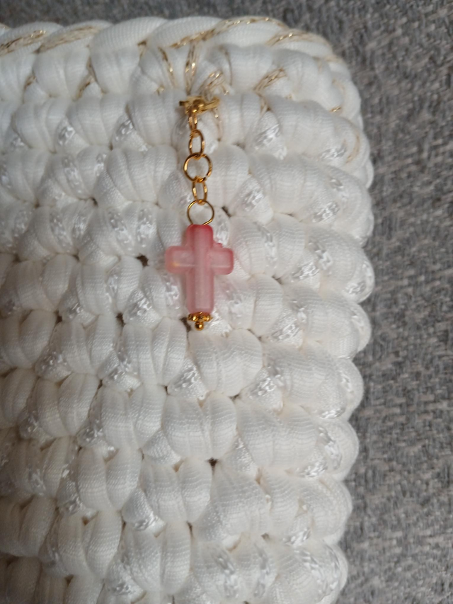 Décoré d’un ruban 🎀 élégant et d’un charm en forme de croix ✝️il allie délicatesse et originalité.
